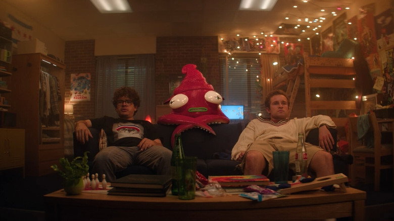 A group of college students go downstairs to their dorm lobby to get a delivery pizza. There's only one issue: They're insanely high on a homemade drug, turning their simple journey down two sets of stairs into a mind-bendingly transformative quest.